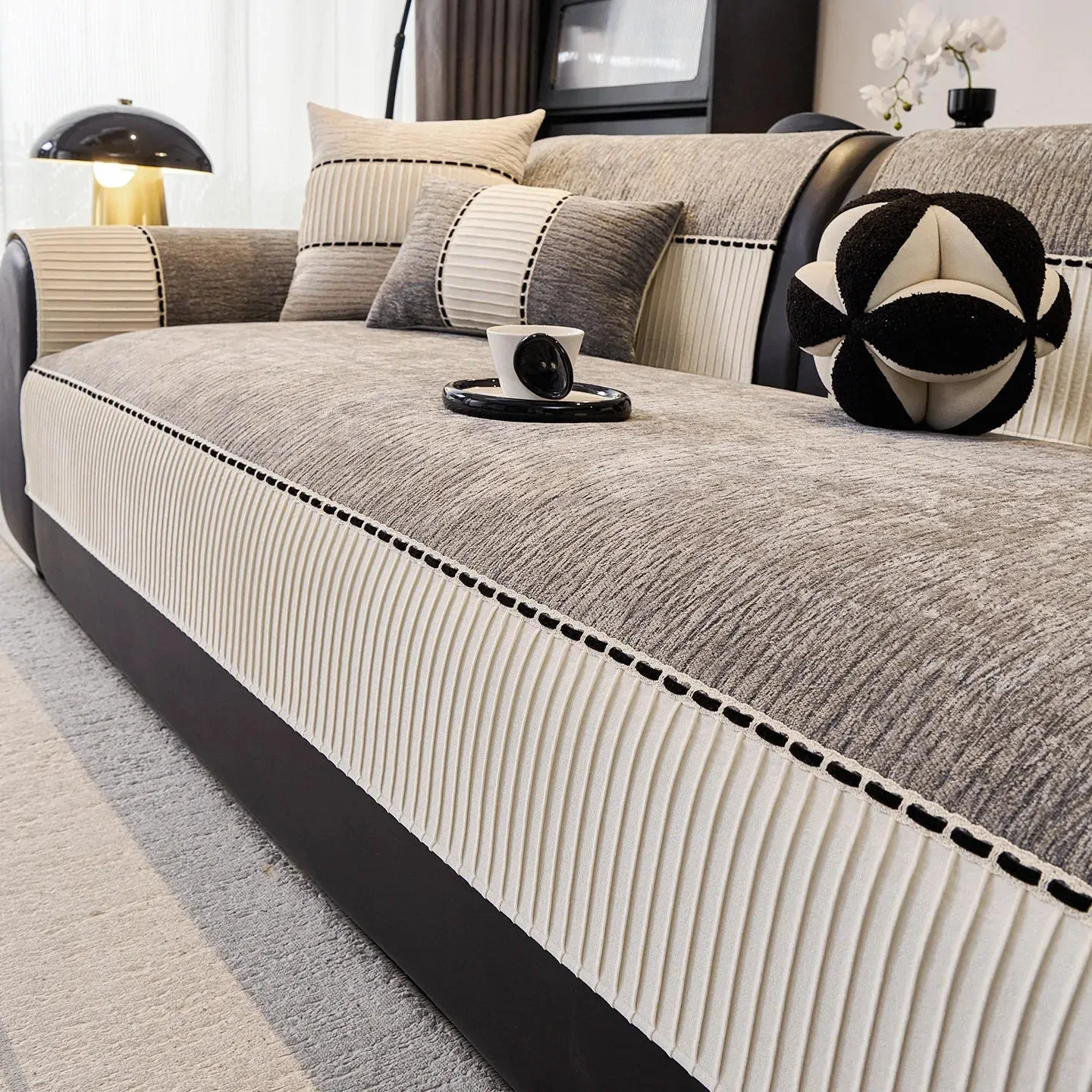 الصفحة الرئيسية اثاث غطاء أريكة من شنيل متين بنهايات لامعة متباينة