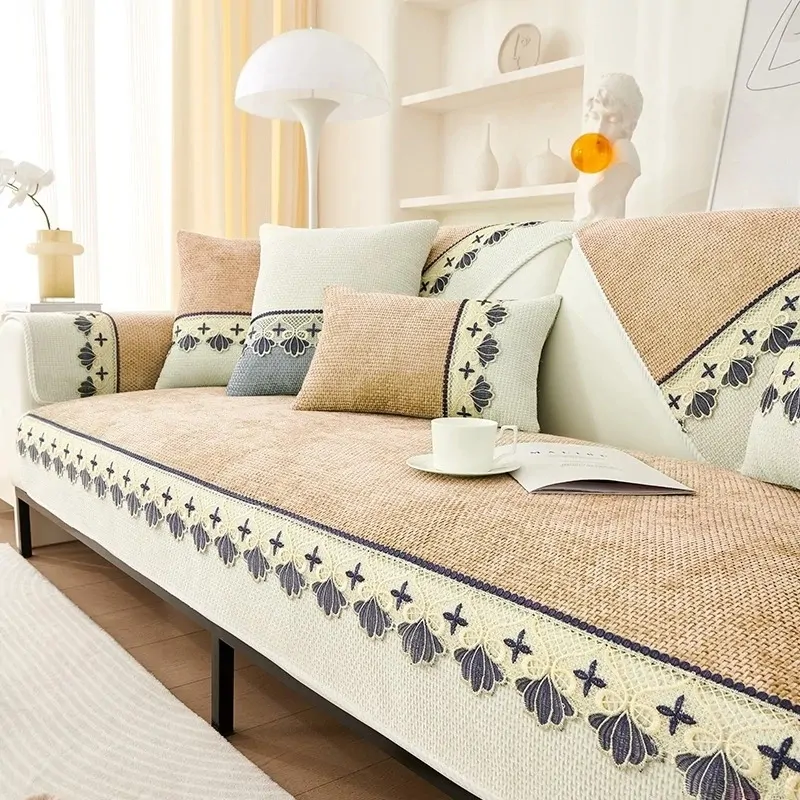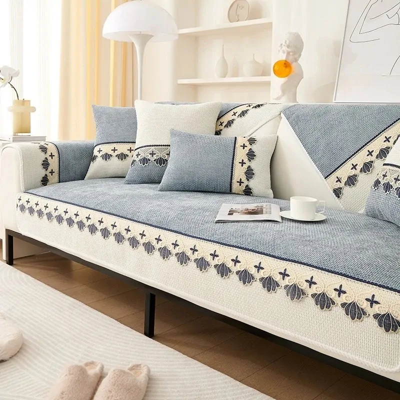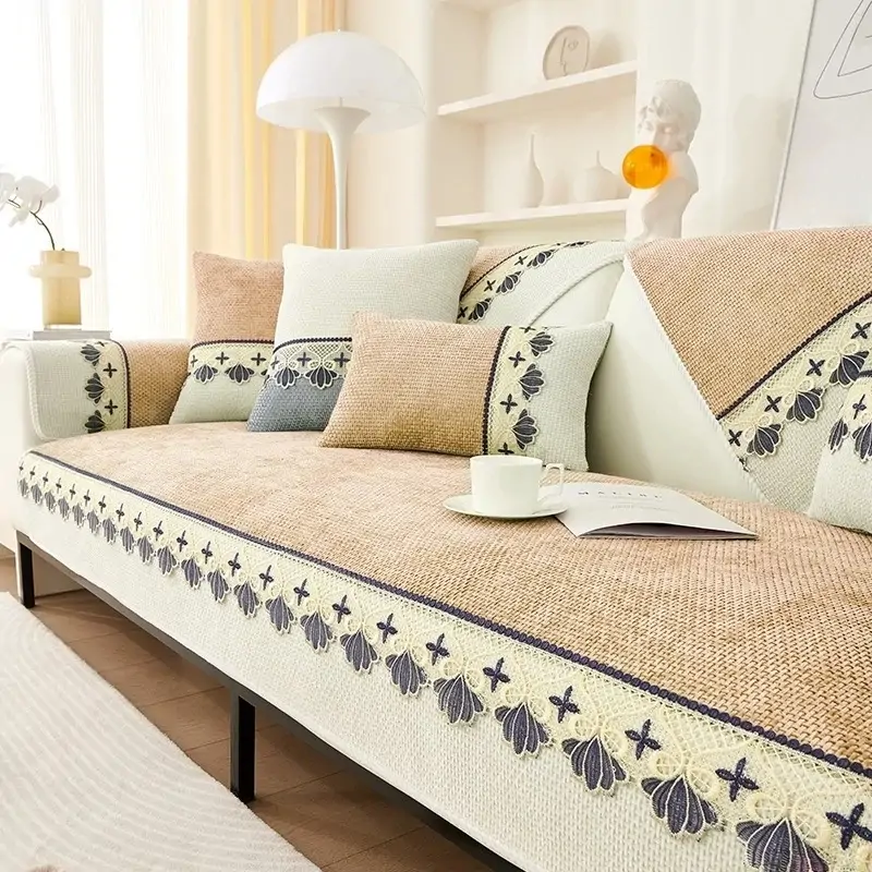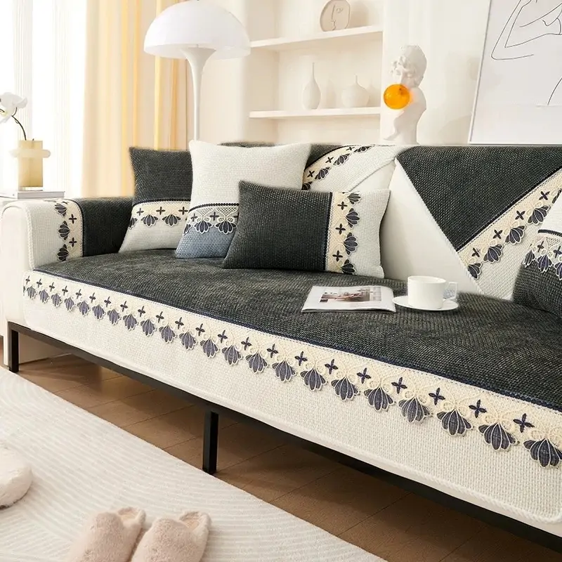 الصفحة الرئيسية اثاث قطعة واحدة غطاء أريكة من شنيل بنمط دانتيل عصري